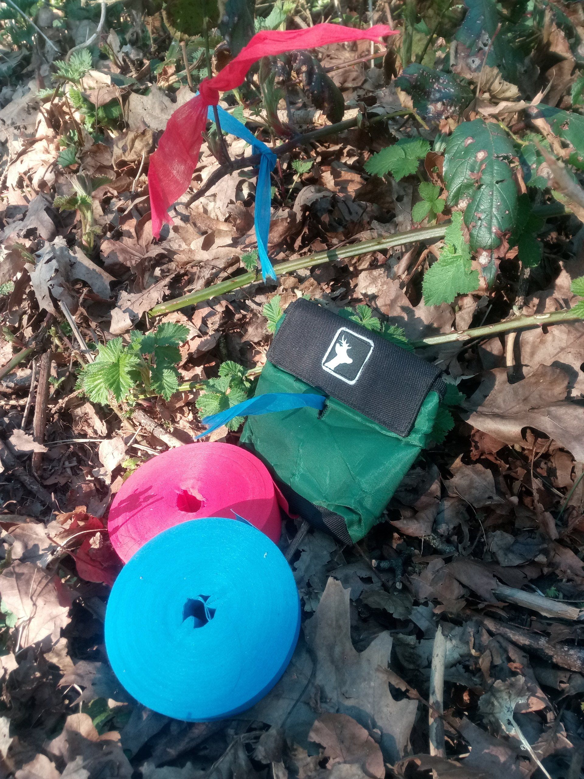 Dieses gibt es günstig in verschiedenen Farben im Jagd- und Forstbedarf und es lohnt sich, eine Rolle bei der Jagd dabei zu haben. Aushilfsweise ist auch das Markieren mit einem Taschentuch o.ä. geeignet.