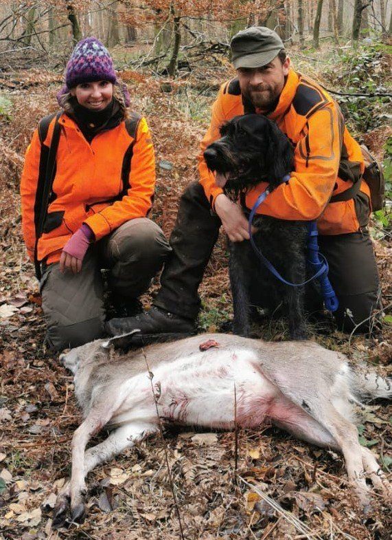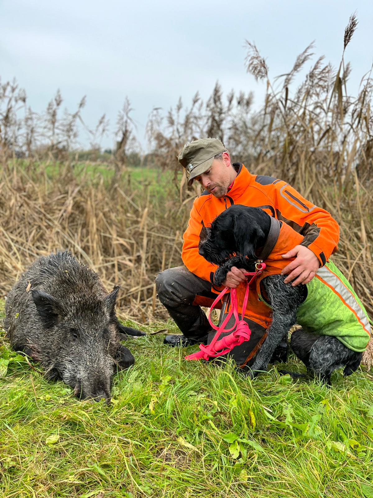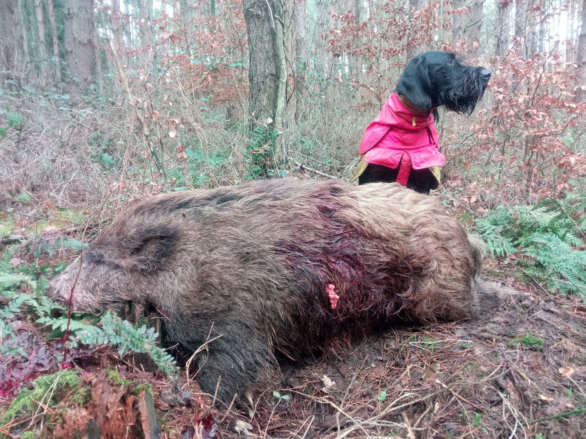 Sie konnte bereits bei ihrer ersten Nachsuche mit 2500 m Riemenarbeit und 500 m Hatz auf ein 60 kg schweres Stück Schwarzwild ihre besondere Eignung beweisen. Eine besondere Vorliebe für Schwarzwild ist ihr dabei geblieben.